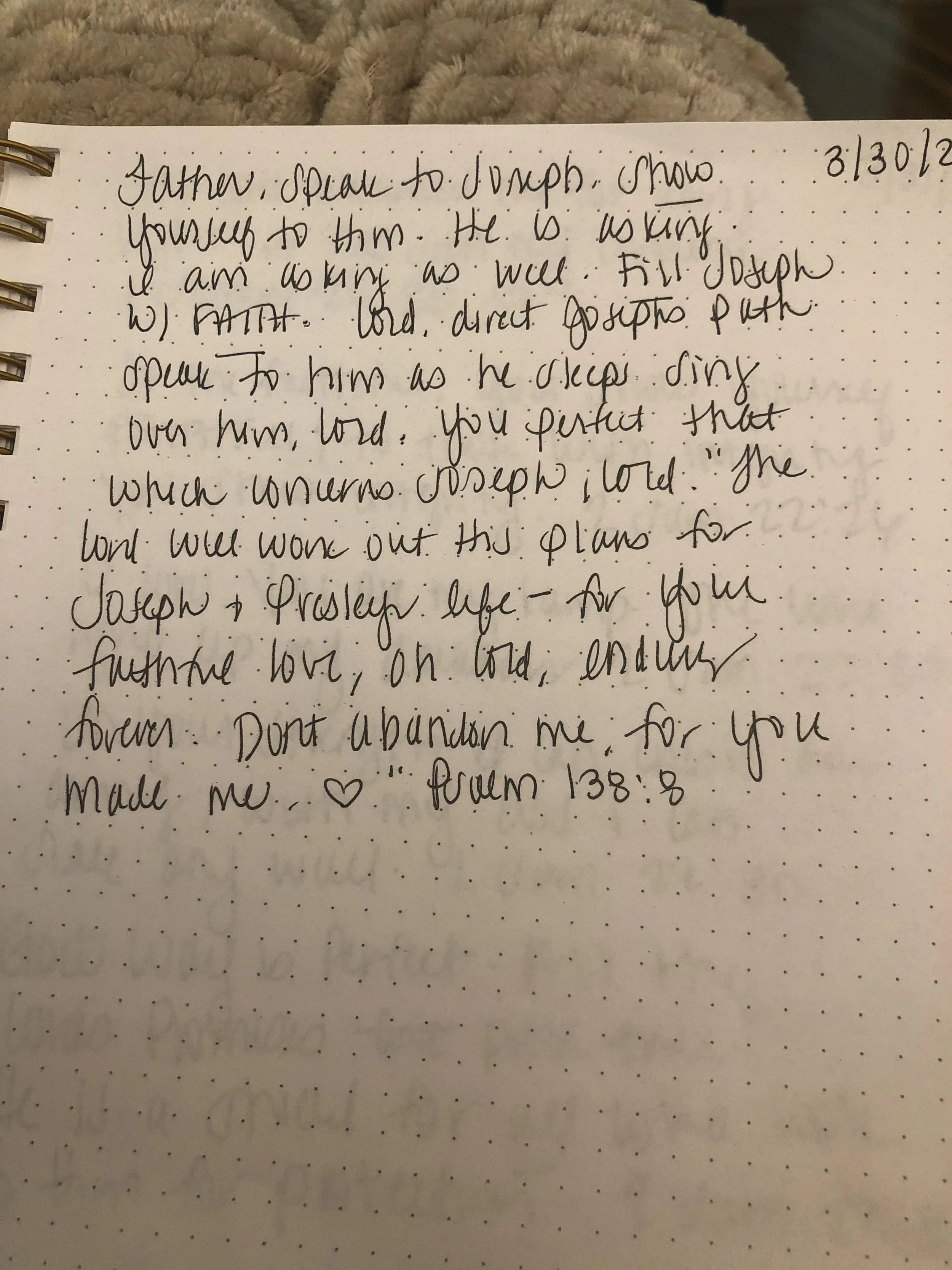 A few mornings later, I came across my prayer journal entry the morning before this happened.