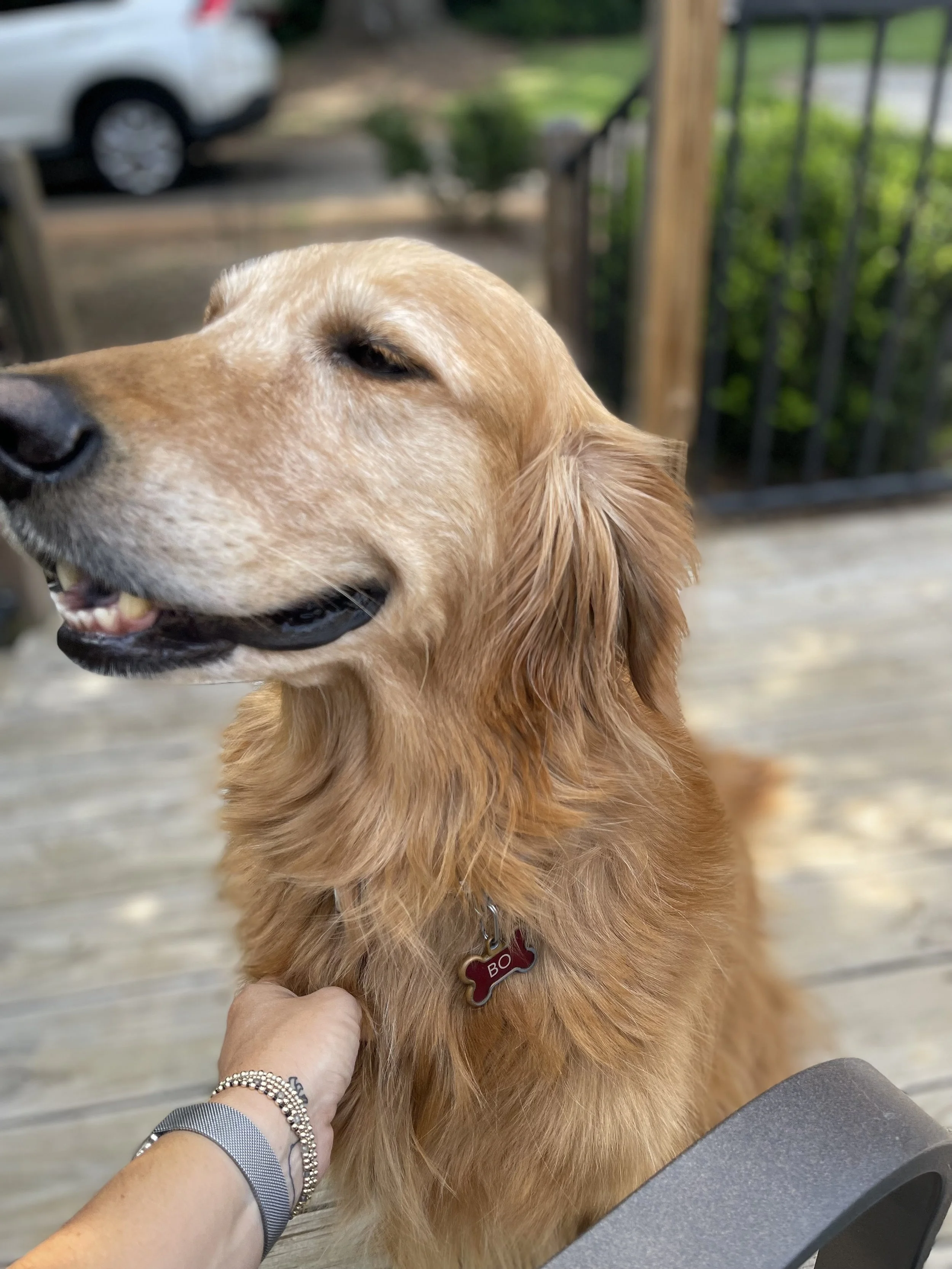 Bo, my sweet pup, had gotten entangled in his leash and my hands were full with my phone, doggie potty bags, a water bottle and of course his leash.